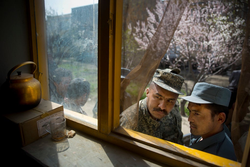 And newly trained female officers in crisp, dark uniforms sat at the front of their graduating class in a ceremony at the National Army’s training center in Kabul.