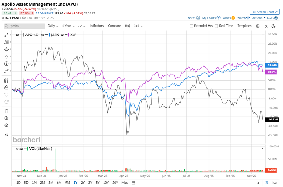 APO stock has considerably underperformed the S&P 500 Index’s ($SPX) 13.5% gains over the past 52 weeks, with shares down 15.4% during this period. Similarly, it notably underperformed the Financial Select Sector SPDR Fund’s (XLF) 9% gains over the same time frame.