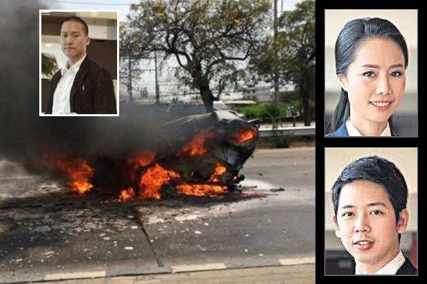 Thanthaphat Horsaengchai, 34, and Kritsana Thaworn, 32, died in an inferno when their car burst into flames. Both were studying for a master's degree at Mahachulalongkornrajavidyalaya University.