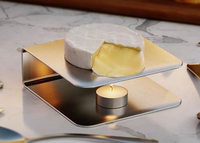 A chic warming plate that softens cheese with a candle