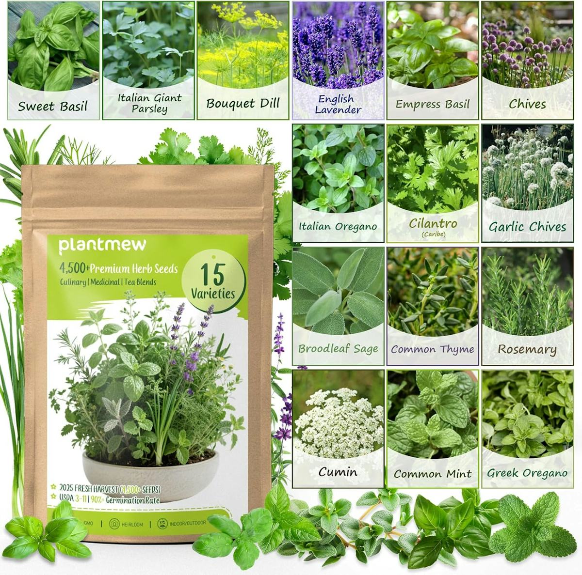 A variety pack of herb seeds that are non-GMO