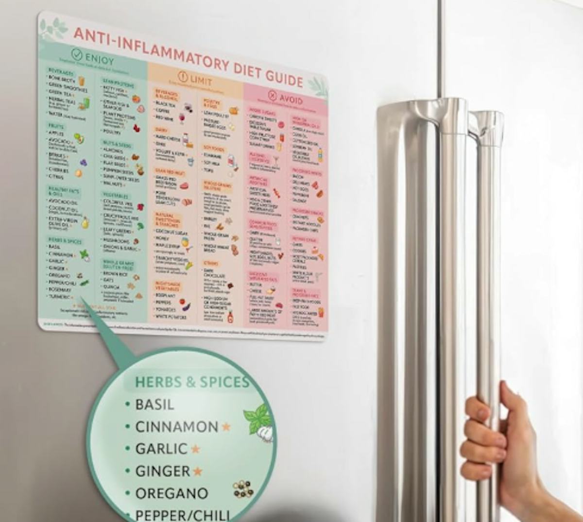 An anti-inflammatory diet guide to stick on your fridge