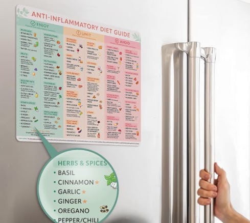 Maintaining an anti-inflammatory diet is way easier when you have this guide to help you out. It puts foods and beverages into three categories: enjoy, limit, or avoid. The magnetic backing lets you stick it to your fridge so that it’s easy to reference.