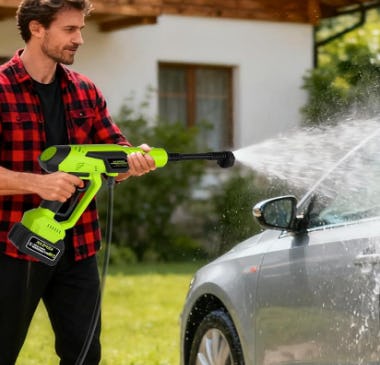A cordless pressure washer with multiple spray moes