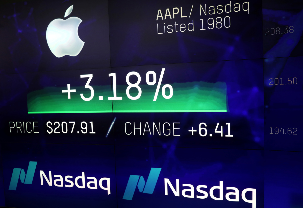 The tech company's stock jumped 2.9 percent to end the day at $207.39, giving it a market capitalization of $1.002 trillion. During the session, Apple's stock market value reached as much as $1.006 trillion.