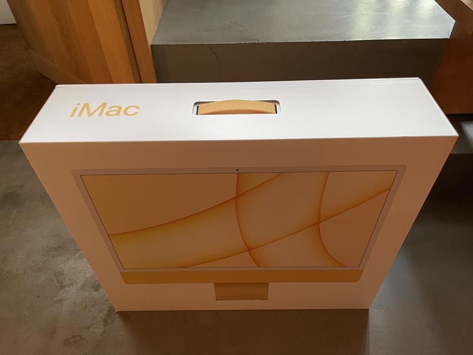 The secondary color is found on the glass front of the computer, the woven power and Lightning cables and the big Apple logo on the back of the iMac.
