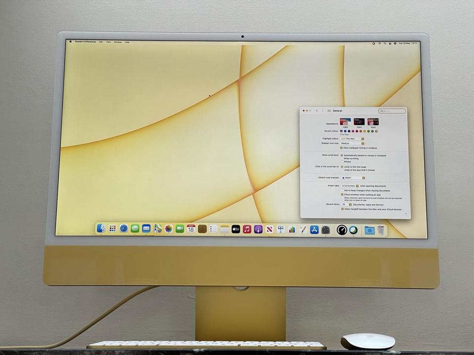 Go to settings in macOS 11 and you’ll see under General there are nine accent color options. With the M1 iMac there’s a tenth. Click this and the setting changes to “This Mac”. The accents and details and highlight colors all now match that of your iMac.