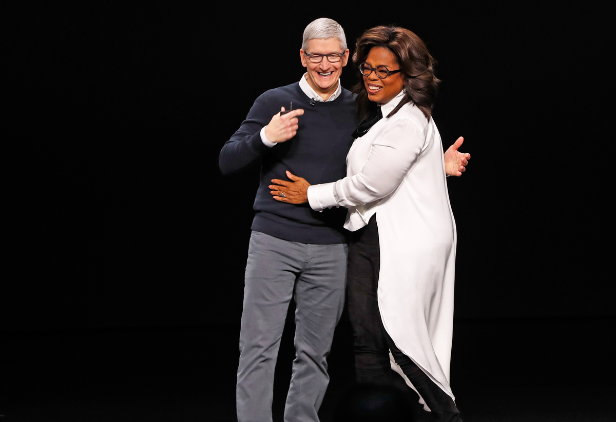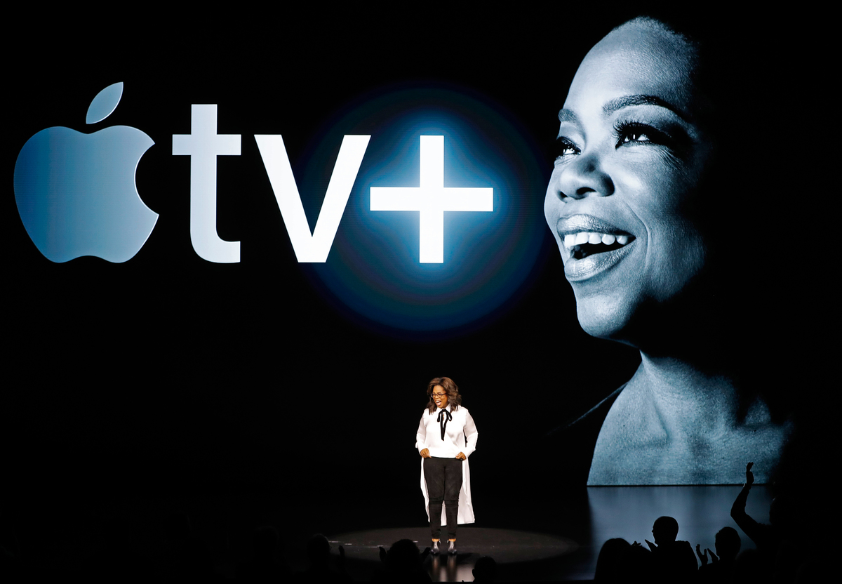 Hollywood celebrities helped debut the revamped television offering. Apple has commissioned programming from Jennifer Aniston, Reese Witherspoon, Winfrey, Spielberg and others.