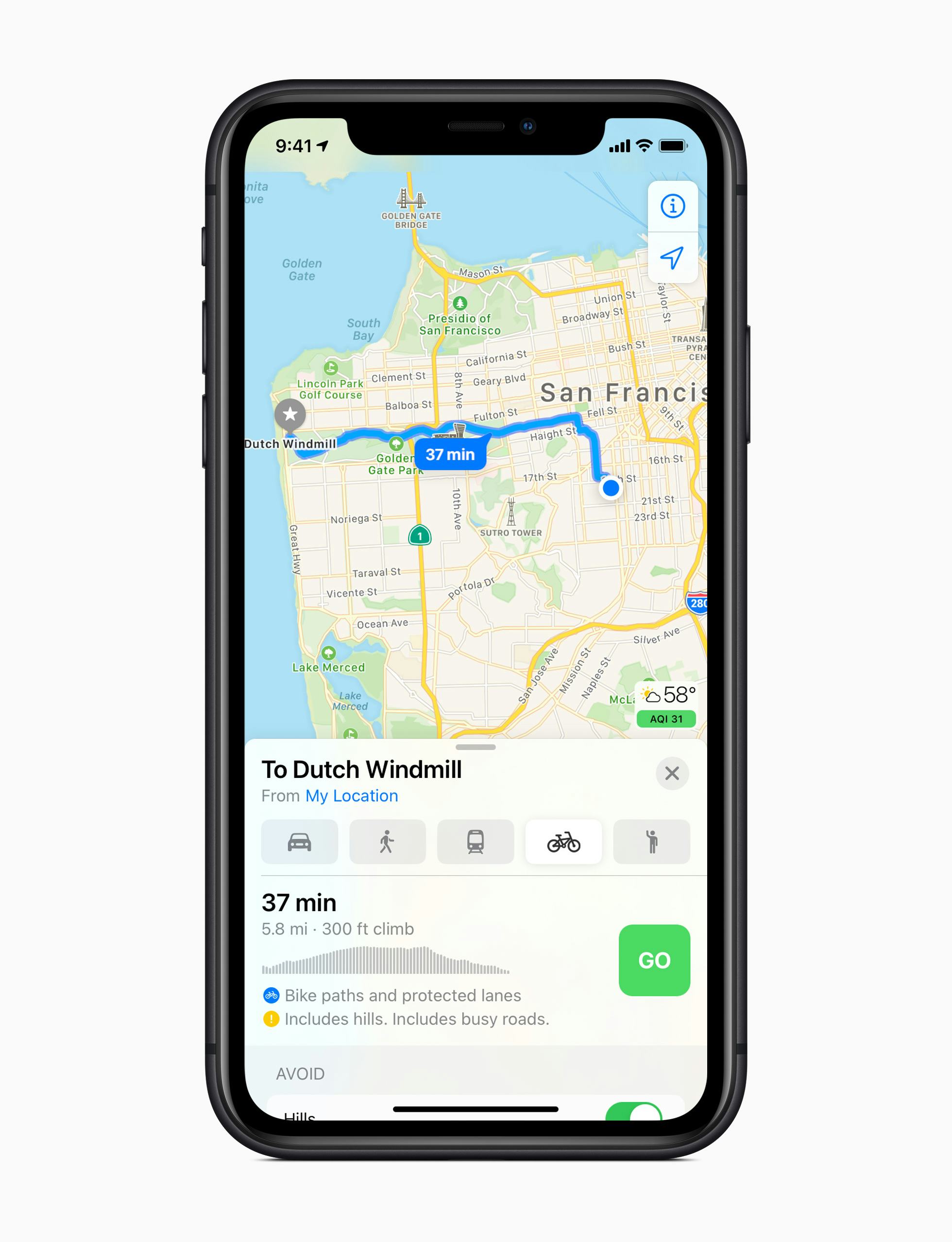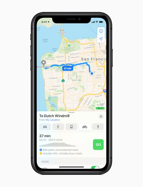 Apple wants to encourage greener lifestyles by making it easier to make environmentally friendly choices for your commute (if you still have one). The company's Maps now feature cycling routes that note the elevation of the path, busy streets, and stairs; electric vehicle routes that prioritize the availability of chargers; and special, curated guides that focus on attractions within the city.