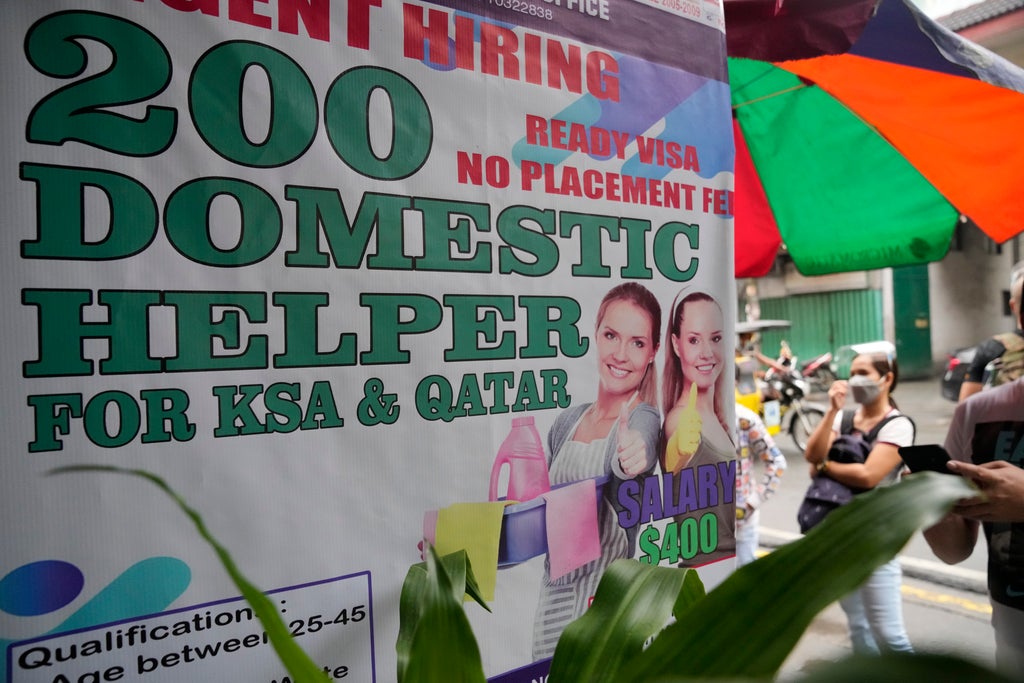In a statement to the AP, Saudi Arabia’s Ministry of Human Resources and Social Development said the kingdom “stands firmly against all types of illegal practices in the labor market” and that all labor contracts must be approved by authorities. While keeping in contact with the Philippines and other nations on labor issues, the ministry said Facebook had never been in touch with it about the problem.