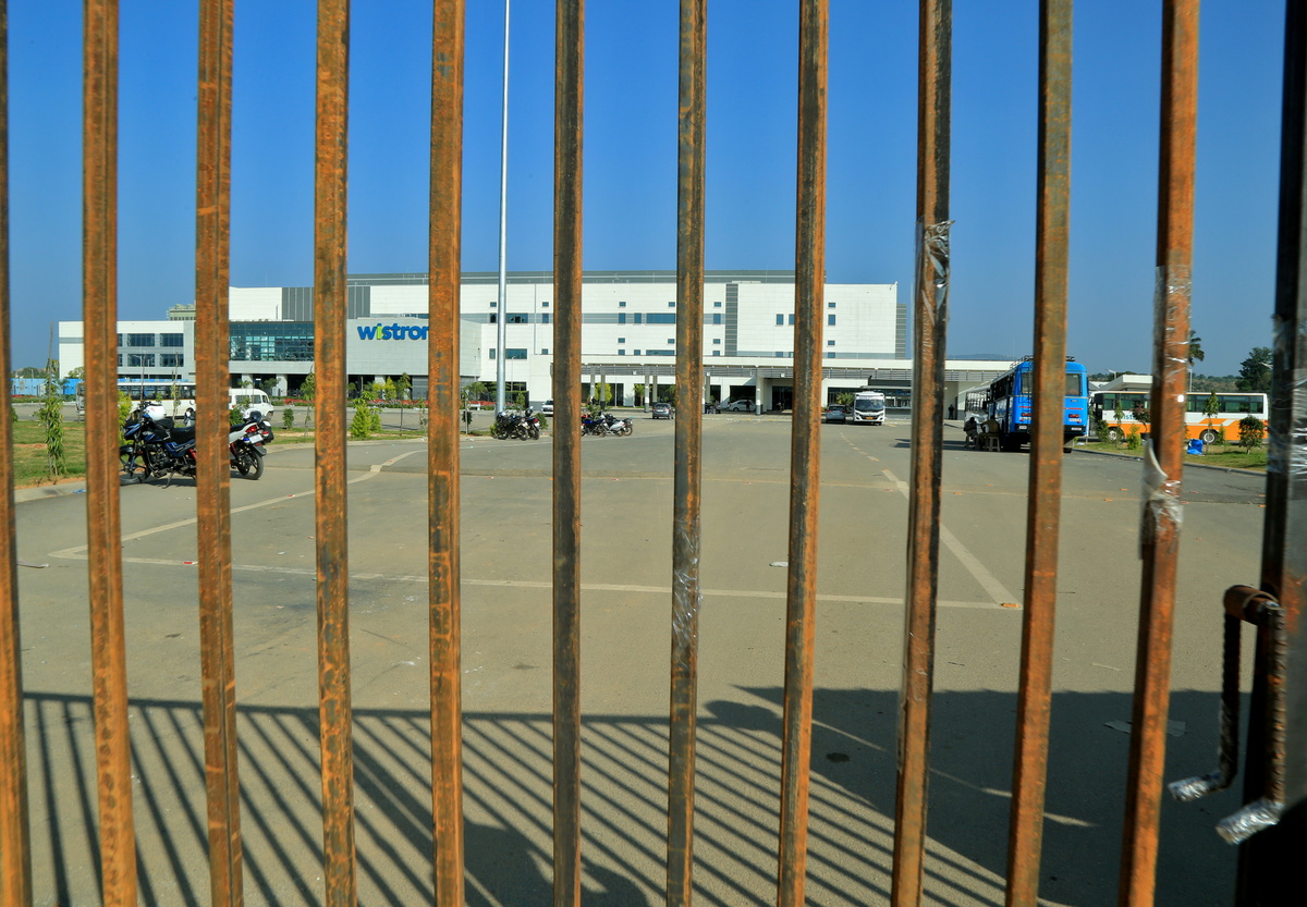 Thousands of contract workers gathered on the grounds of the Wistron site on the outskirts of India's tech hub of Bengaluru on Saturday demanding unpaid wages and better working hours.