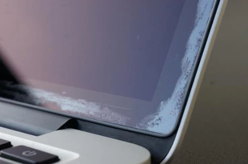 According to MacRumors, the anti-reflective coating found on Apple's Retina displays for MacBooks is prone to wearing off, causing an unsightly appearance like the one seen here:
