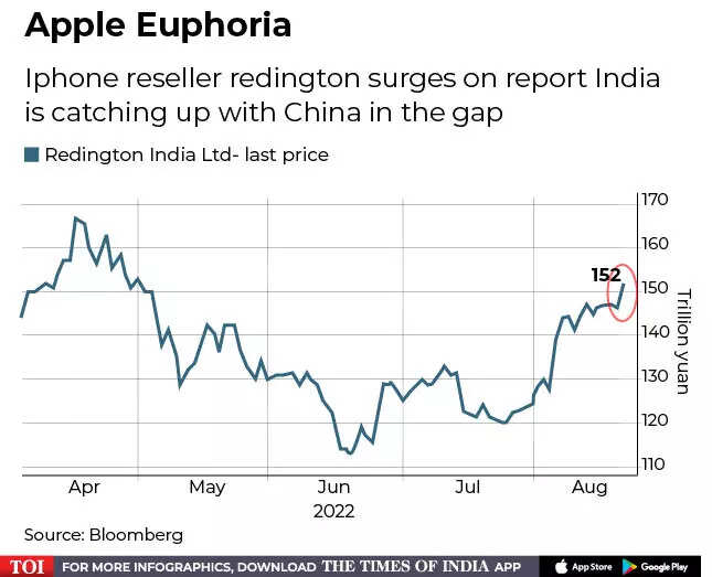 Redington India, which distributes Apple products in the country, rose as much as 9.5% after Bloomberg’s initial report.