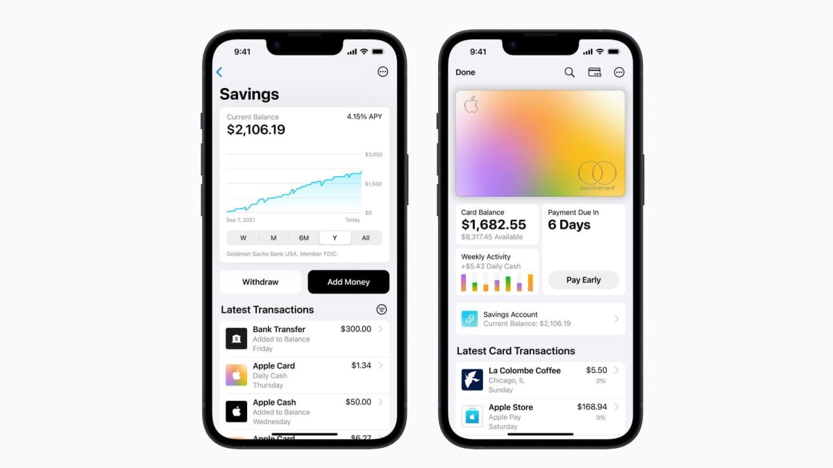 "Users will also have access to an easy-to-use Savings dashboard in Wallet, where they can conveniently track their account balance and interest earned over time," Apple said in a release. "Users can also withdraw funds at any time through the Savings dashboard by transferring them to a linked bank account or to their Apple Cash card, with no fees."
