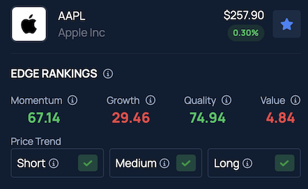 Benzinga's Edge Stock Rankings indicate that AAPL maintains a robust upward trend over short, medium and long-term periods. More detailed performance insights can be found here.