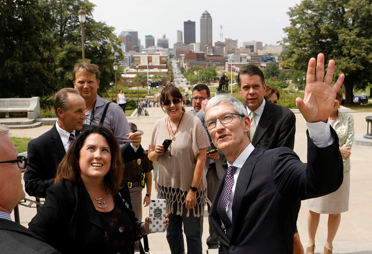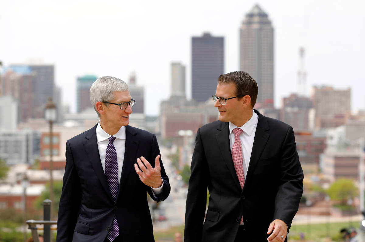 Speaking alongside Iowa Governor Kim Reynolds, Apple Chief Executive Tim Cook said the facility "will create hundreds of jobs for people in Iowa from construction to engineering."