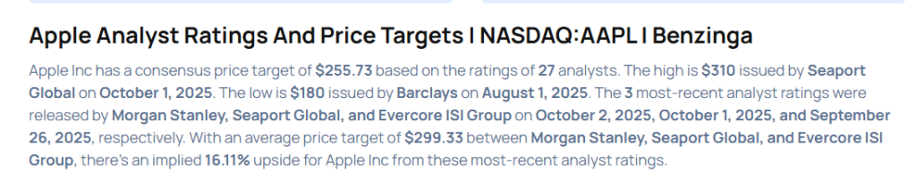 - Morgan Stanley raised Apple Inc. (NASDAQ:AAPL) price target from $240 to $298. Morgan Stanley analyst Erik Woodring maintained an Overweight rating. Apple shares closed at $255.45 on Wednesday. See how other analysts view this stock.