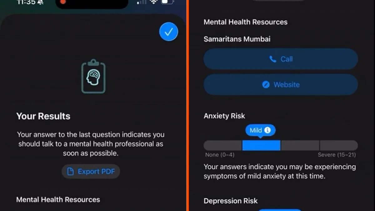 When you complete an assessment on Apple’s website, you get a risk score for both depression and anxiety. If your score indicates you might need professional help, the app will then point you toward local mental health services. However, Apple is very clear that these results and resources are “provided for informational purposes only and are not a substitute for advice provided by a doctor or other qualified health care professional.”