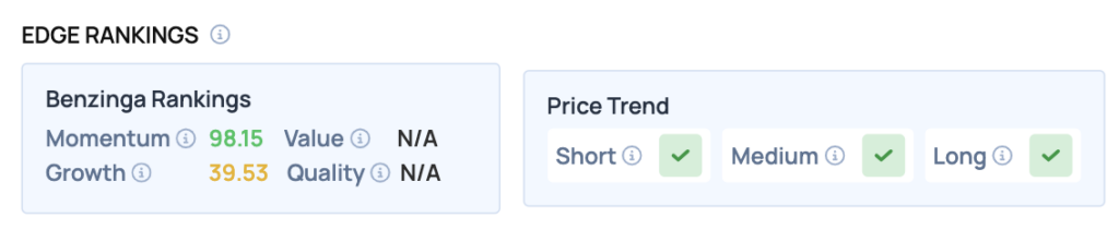Benzinga Edge Rankings: Underscoring this week’s rally, Benzinga Edge rankings show the stock has a powerful Momentum score of 98.15, signaling strong recent price performance.
