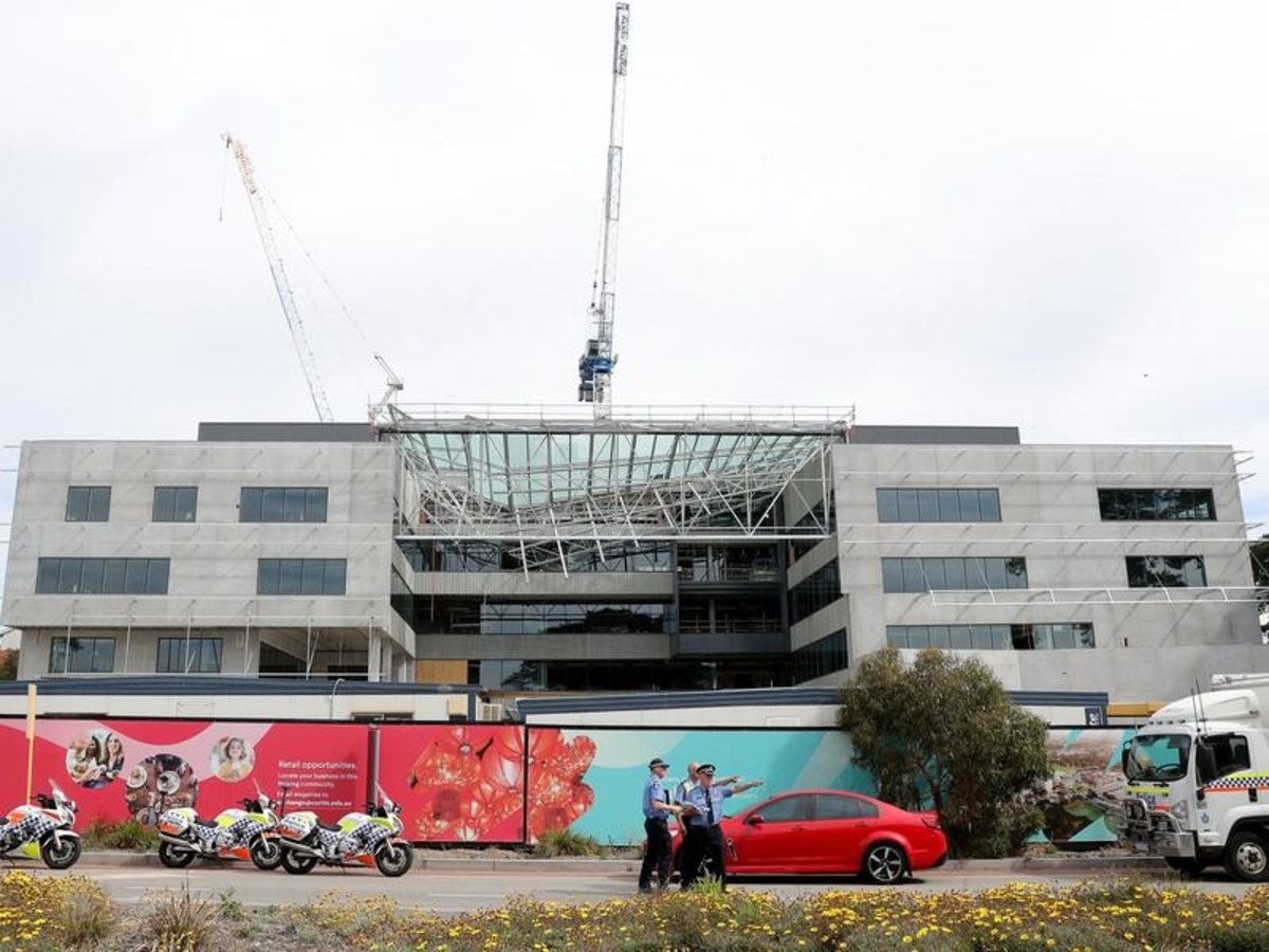 A third worker inside the building at the university's Bentley campus was also injured after falling about 10 metres.