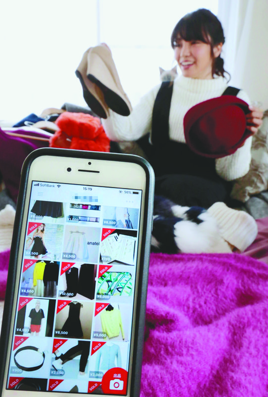 Most of the belongings Ai Sakai uses every day, such as clothing and shoes, are used items she bought via Mercari, a major flea market app. When the 27-year-old company employee in Taito Ward, Tokyo, gets tired of what she has, she offers it for sale on the same app.