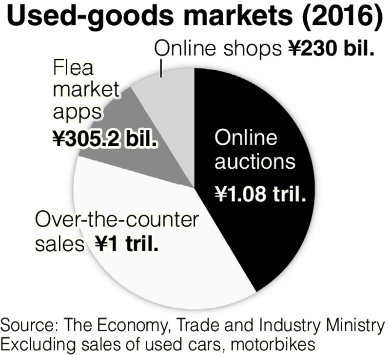 The used-item market, not counting cars and motorcycles, was worth about 2.62 trillion yen in 2016, according to estimates by the Economy, Trade and Industry Ministry. The market has vastly grown in recent years.