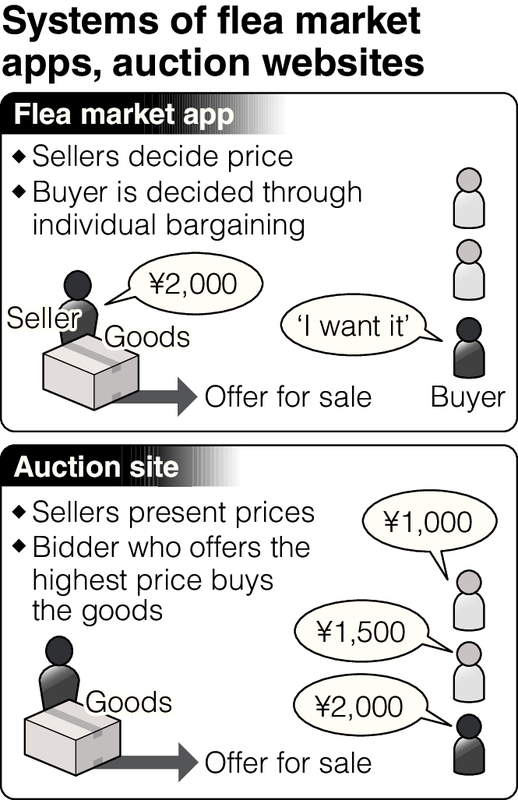 The trend was triggered by the advent of flea market apps for smartphones in 2012. With such apps, deals are made immediately when buyers accept prices offered by those who want to sell.