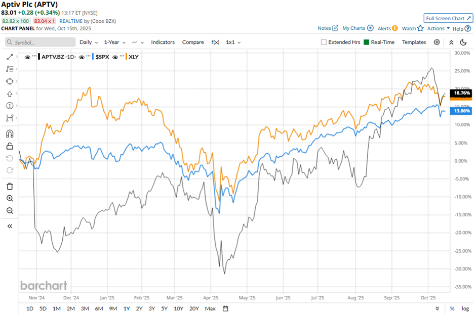 Shares of Aptiv have returned 19.6% over the past 52 weeks, outperforming both the S&P 500 Index's ($SPX) 14.7% gain and the Consumer Discretionary Select Sector SPDR Fund's (XLY) 18.8% increase over the period.
