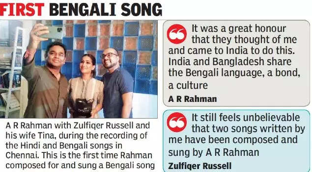 KOLKATA: A R Rahman has collaborated with Bangladesh’s national award-winning lyricist Zulfiqer Russell to compose and lend his voice to two theme songs to celebrate the birth centenary of Bangabandhu Sheikh Mujibur Rahman. Both songs were recorded at Rahman’s Chennai studio last year.