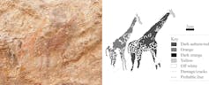 Our primary study site is called Little Muck Shelter. It is in the Mapungubwe National Park and about 4km south of the Limpopo River. The shelter is fairly large with a protected area under a high ceiling and a large open space in front. It also has many paintings on its walls, including elephants, kudu, felines, people, and a stunning set of giraffes. This art was produced by hunter-gatherers and it is generally considered to refer to the spirit-world and the activities of shamans therein.