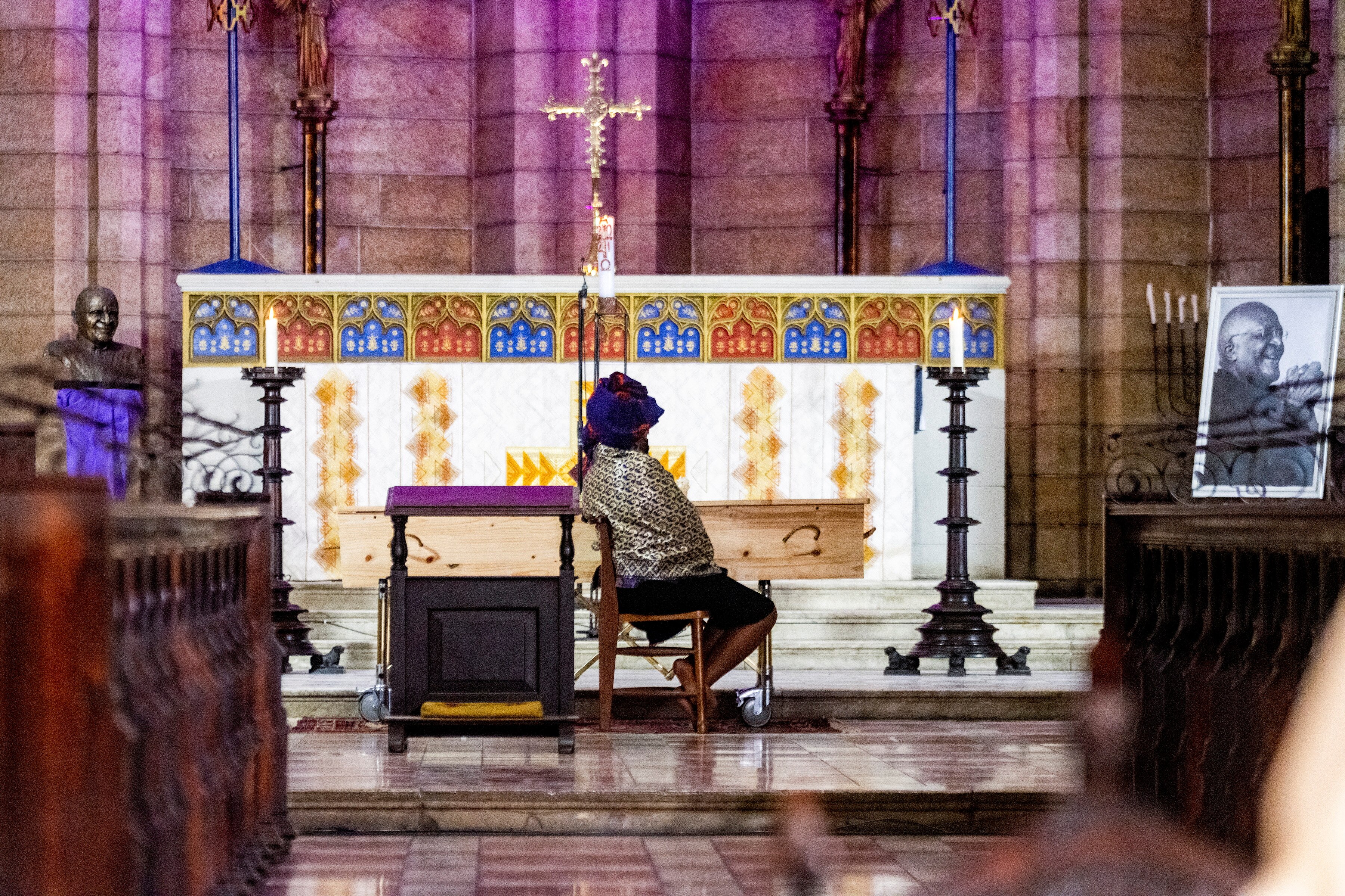 The cathedral, as well as Table Mountain which rises above Cape Town, have been illuminated every night this week in purple, the colour of Archbishop Tutu's clerical robes.