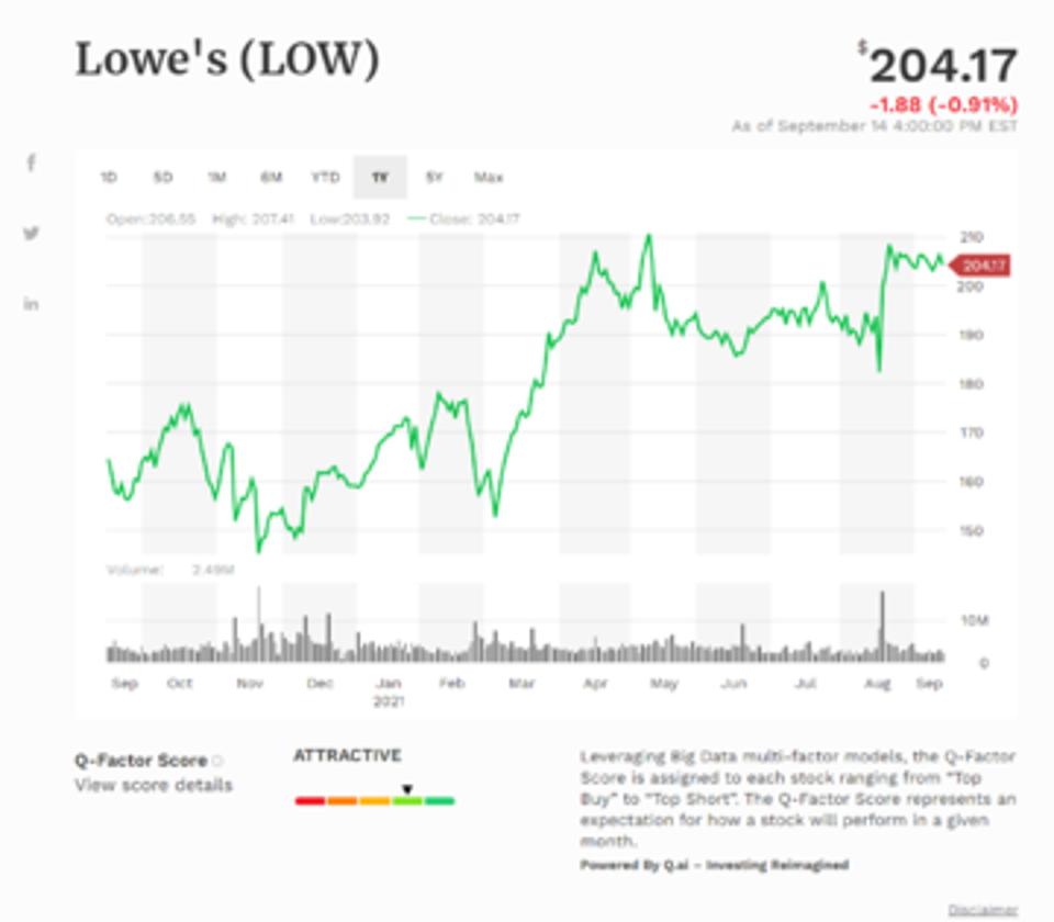 Lowe's Cos Inc is our next Top Buy today. Lowe’s is a big-box home improvement retailer and ranks just behind Home Depot