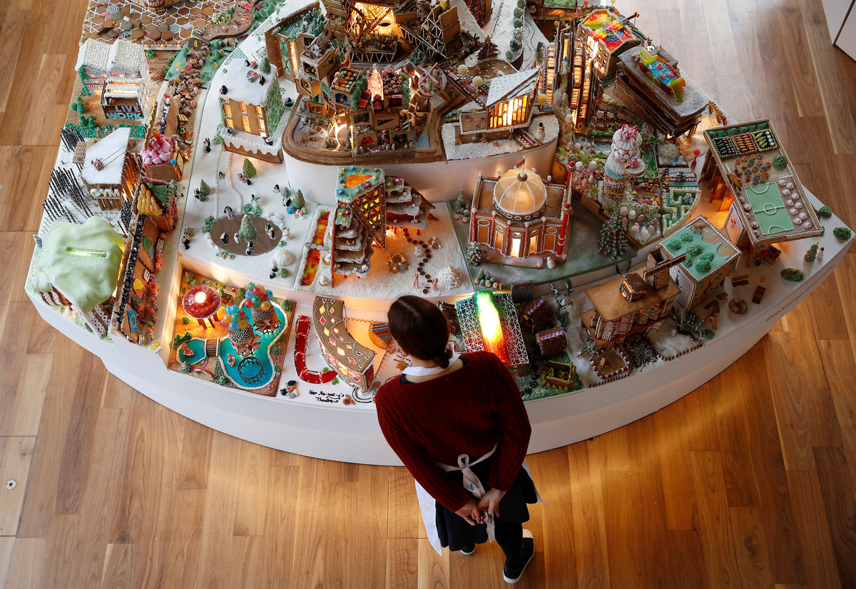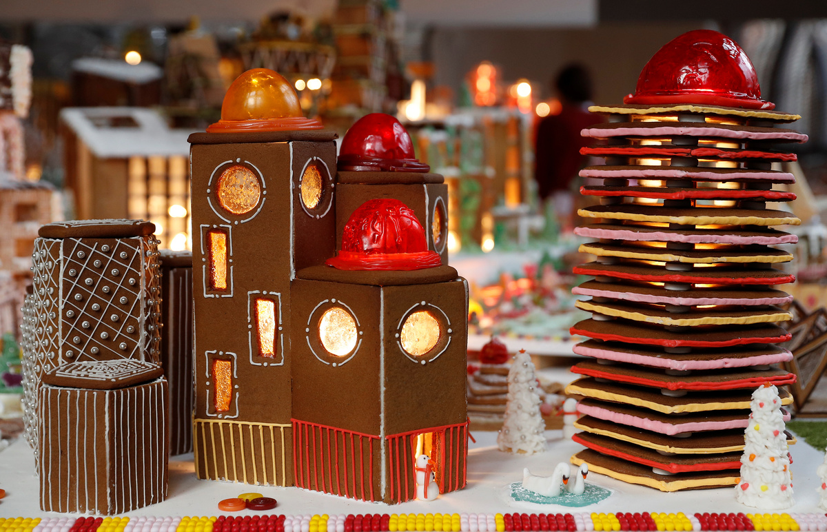 A staff member at the poses for a photograph next to the Museum of Architecture's Gingerbread City at the V&A Museum, in London, Britain, December 5, 2018. REUTERS/Peter NichollsA gingerbread structure by architects Lyndon-Goode is seen at Museum of Architecture's Gingerbread City sat the V&A museum, in London, Britain, December 5, 2018. REUTERS/Peter NichollsA staff member at the poses for a photograph next to a design called Temporal Pleasure by architects, Spaced Out and Evolution Design at the Museum of Architecture's Gingerbread City at the V&A Museum, in London, Britain, December 5, 2018. REUTERS/Peter NichollsA structure built by a robot from architects Foster and Partners is seen the Museum of Architecture's Gingerbread City at the V&A Museum, in London, Britain, December 5, 2018. REUTERS/Peter NichollsA structure called "Rocky Road to Somewhere" by architects NaganJohnson is seen at the Museum of Architecture's Gingerbread City at the V&A Museum, in London, Britain, December 5, 2018. REUTERS/Peter Nicholls