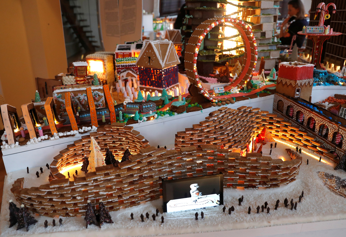 Gingerbread structures are seen on display at the Museum of Architecture's Gingerbread City at the V&A Museum, in London, Britain, December 5, 2018. REUTERS/Peter Nicholls