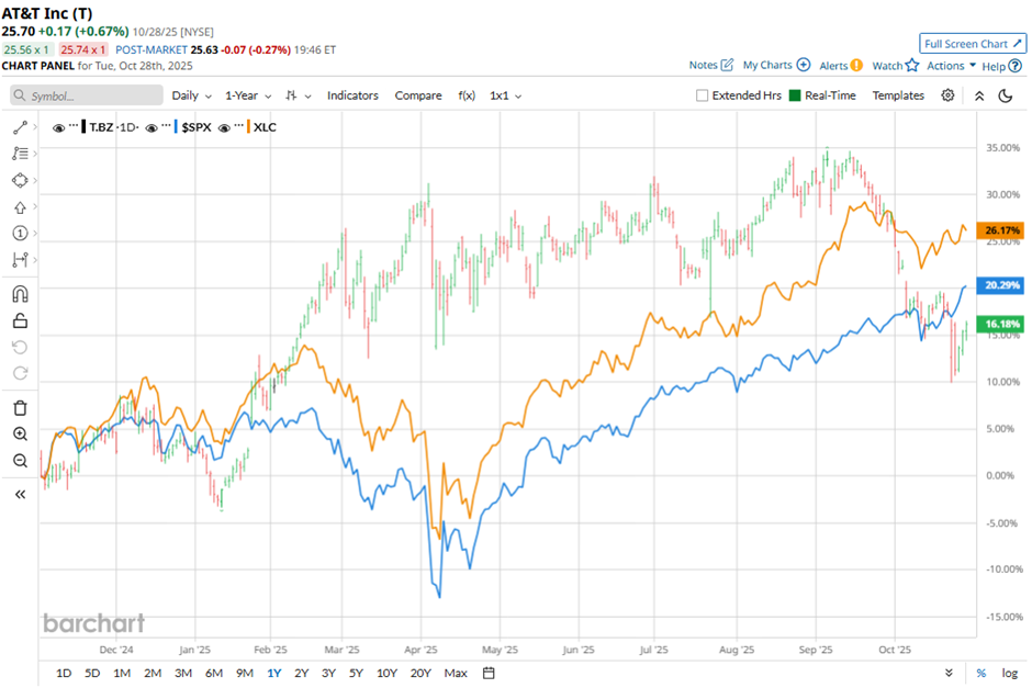 Moreover, shares of the telecom giant have lagged behind the Communication Services Select Sector SPDR ETF Fund’s (XLC) 27.5% surge over the past 52 weeks.