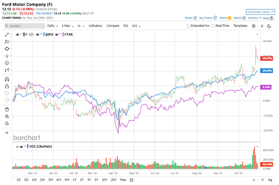 Shares of this auto giant have underperformed the broader market over the past year. F has gained 15.5% over this time frame, while the broader S&P 500 Index ($SPX) has rallied nearly 18.3%. However, in 2025, F stock is up 32.6%, surpassing the SPX’s 17.2% rise on a YTD basis.
