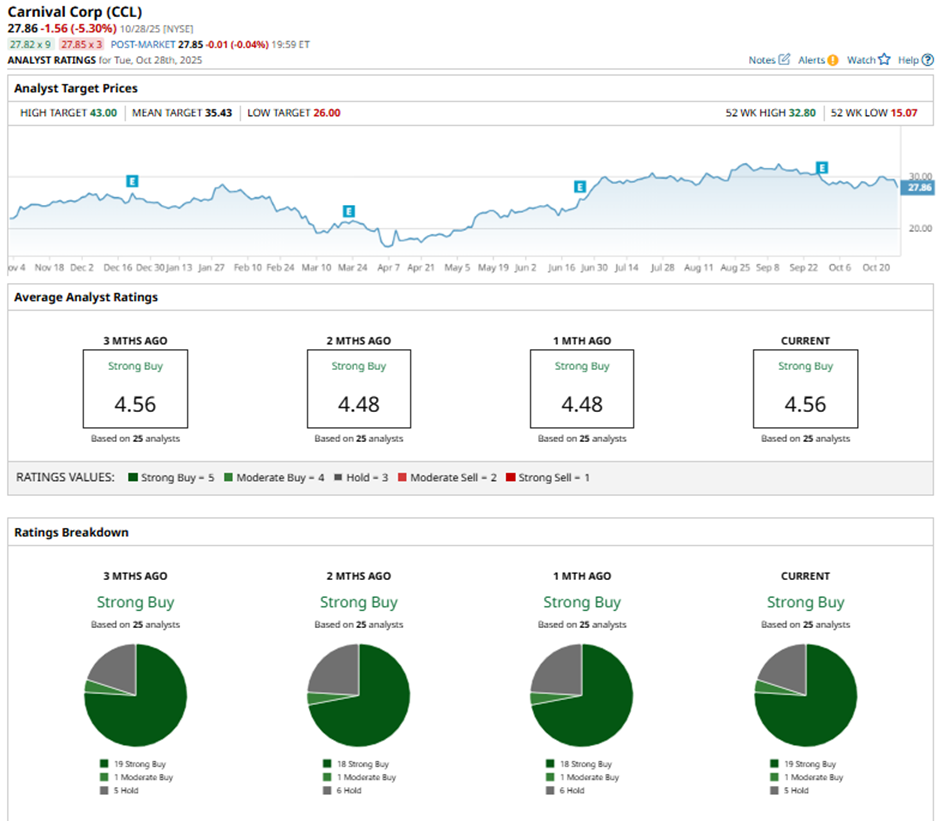 On Oct. 1, Citi raised its price target on Carnival to $38 and maintained a “Buy” rating.