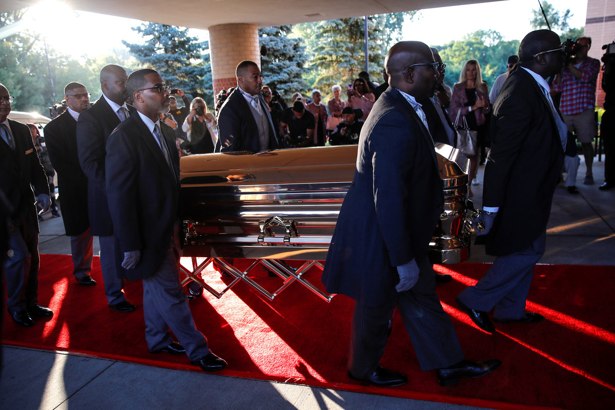 Her coffin is to be entombed in Detroit's Woodlawn Cemetery near the remains of her father; her brother, Cecil Franklin; and her sisters, Carolyn and Erma Franklin.