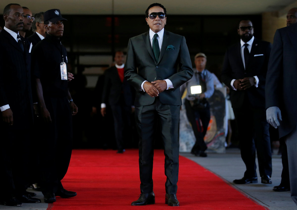 Civil rights leaders Jesse Jackson and Al Sharpton were onstage to honor Franklin's contributions to black empowerment, sharing front-row seats with Louis Farrakhan, the black nationalist and Nation of Islam leader. Sharpton took to the pulpit to laud Franklin for providing the soundtrack of the movement, with songs such as her signature 1967 hit "Respect."