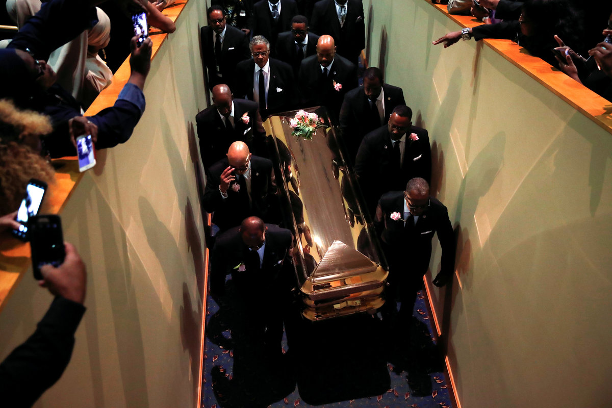 Smokey Robinson, the Motown singer and a long-time friend, crooned a few lines of his song "Really Gonna Miss You." Ariana Grande belted out "Natural Woman" while Gladys Knight took on "You'll Never Walk Alone." An ensemble performance of "Precious Lord" so moved the congregation that the officiant told the orchestra to keep vamping as clergy danced on the stage, expanding a program that by then was already running two hours behind schedule.