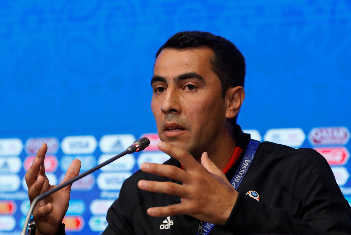 Soccer Football - World Cup - Referees News Conference - Moscow, Russia - June 12, 2018. Referee Ravshan Irmatov attends a news conference. REUTERS/Tatyana MakeyevaSoccer Football - World Cup - Referees News Conference - Moscow, Russia - June 12, 2018. Referees Sandro Ricci (L) and Ravshan Irmatov attend a news conference. REUTERS/Tatyana Makeyeva