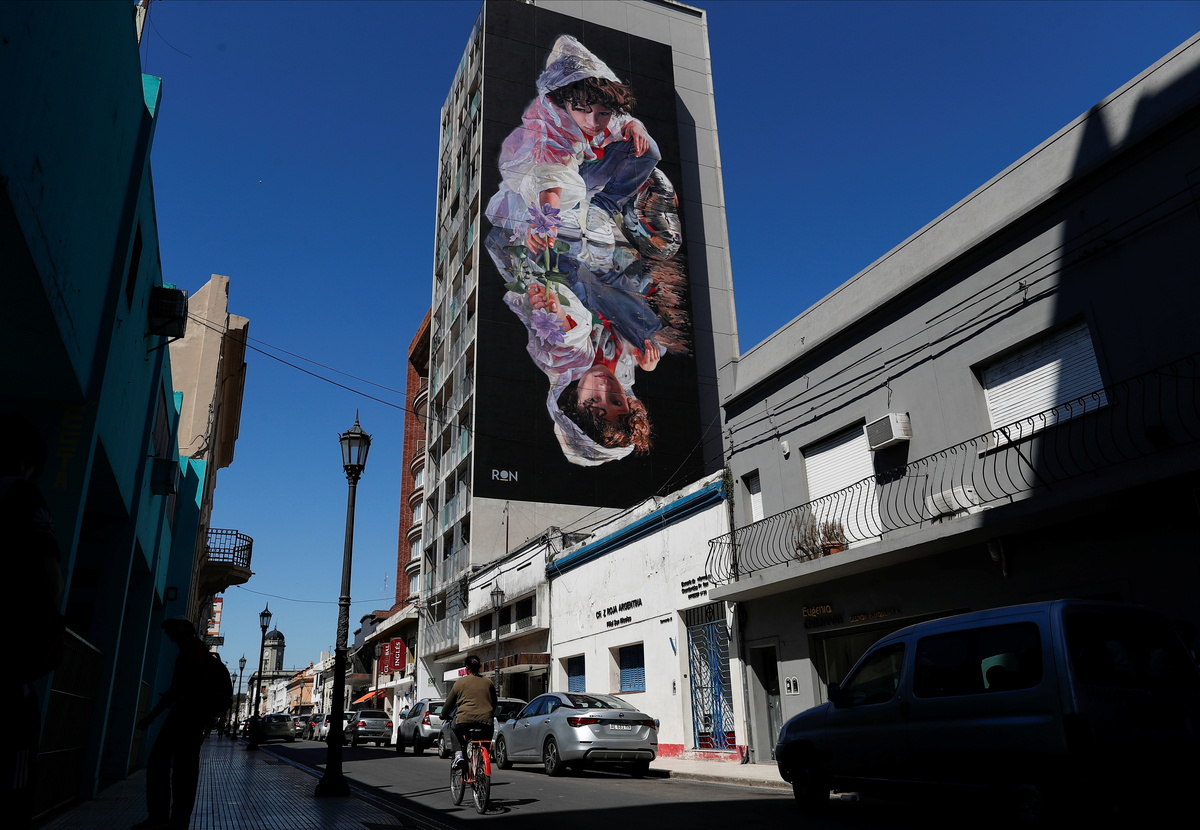 "When I came to San Nicolas I was struck by the historic low level of the Parana River," Argentine muralist Martin Ron, who has created hundreds of murals around the world, told Reuters.