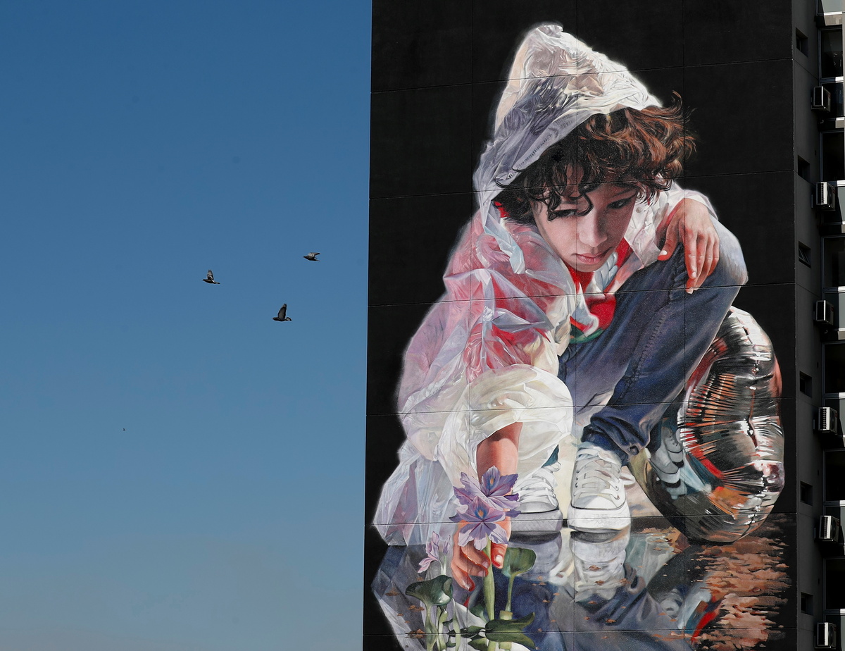 The 40-year-old artist paints between 10 and 12 murals every year and has morphed his style from urban surrealism to what he calls "magical hyper-realism." Other murals he has done include a girl building with Lego blocks and a portrait of soccer player Carlos Tevez.