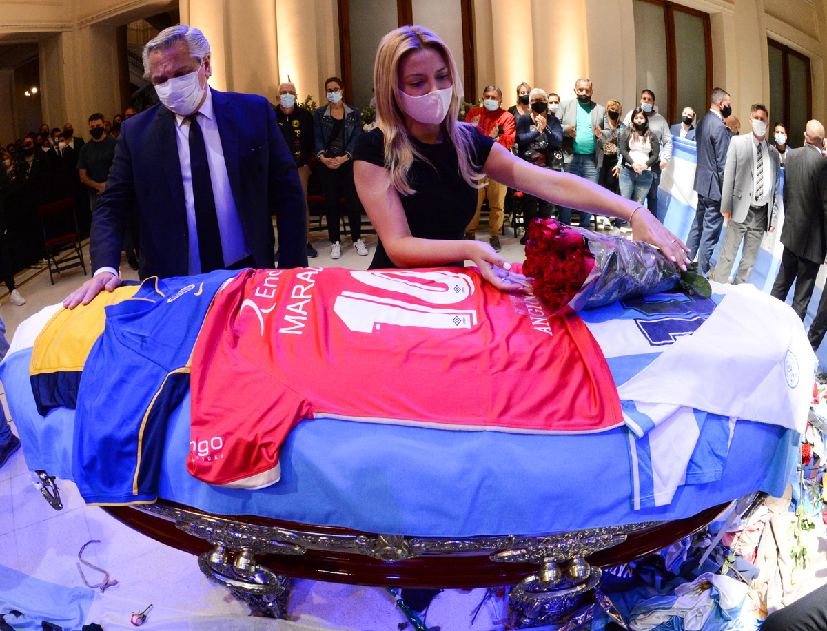 "He was someone who touched the sky with his hands but never took his feet off the ground," President Alberto Fernandez said. He visited the casket on Thursday.