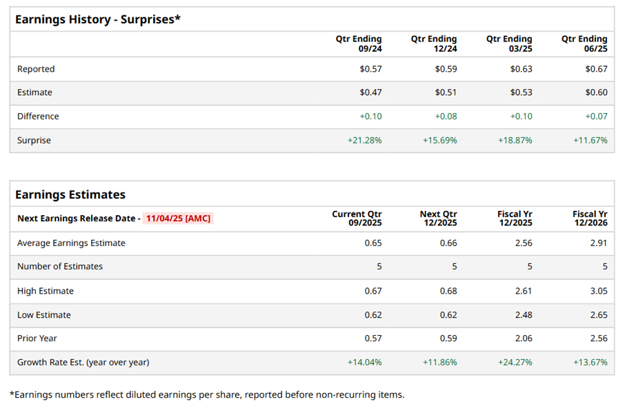 Arista Networks, Inc. (ANET), headquartered in Santa Clara, California, develops, markets, and sells data-driven, client-to-cloud networking solutions for data center, campus, and routing environments. Valued at $183.4 billion by market cap, the leading tech company offers Ethernet switches, pass-through cards, transceivers, and enhanced operating systems. It also provides host adapter solutions and networking services. The cloud networking giant is expected to announce its fiscal third-quarter earnings for 2025 after the market closes on Tuesday, Nov. 4.