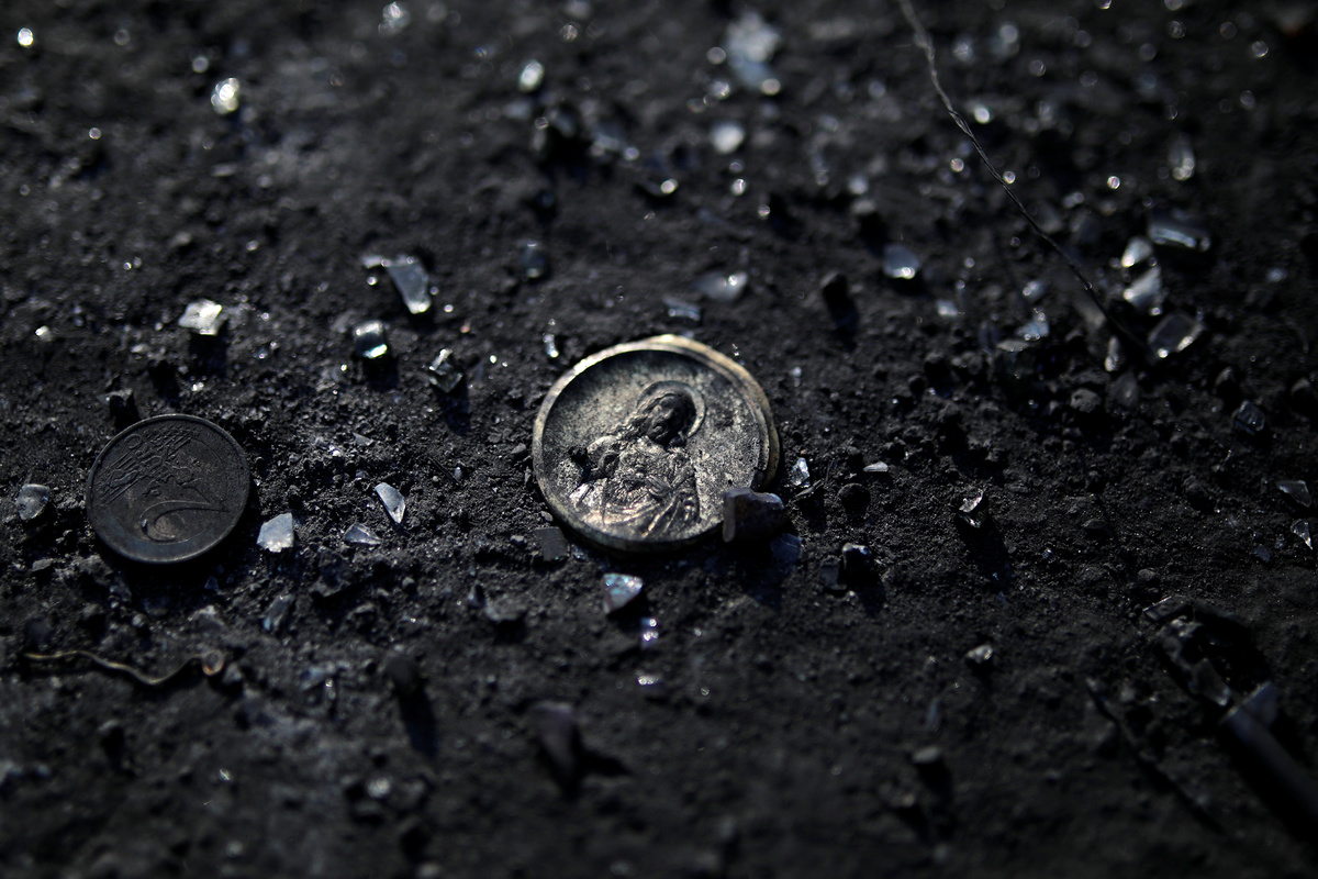 It carried a photo of a burned Greek flag hanging among the branches of a charred tree.