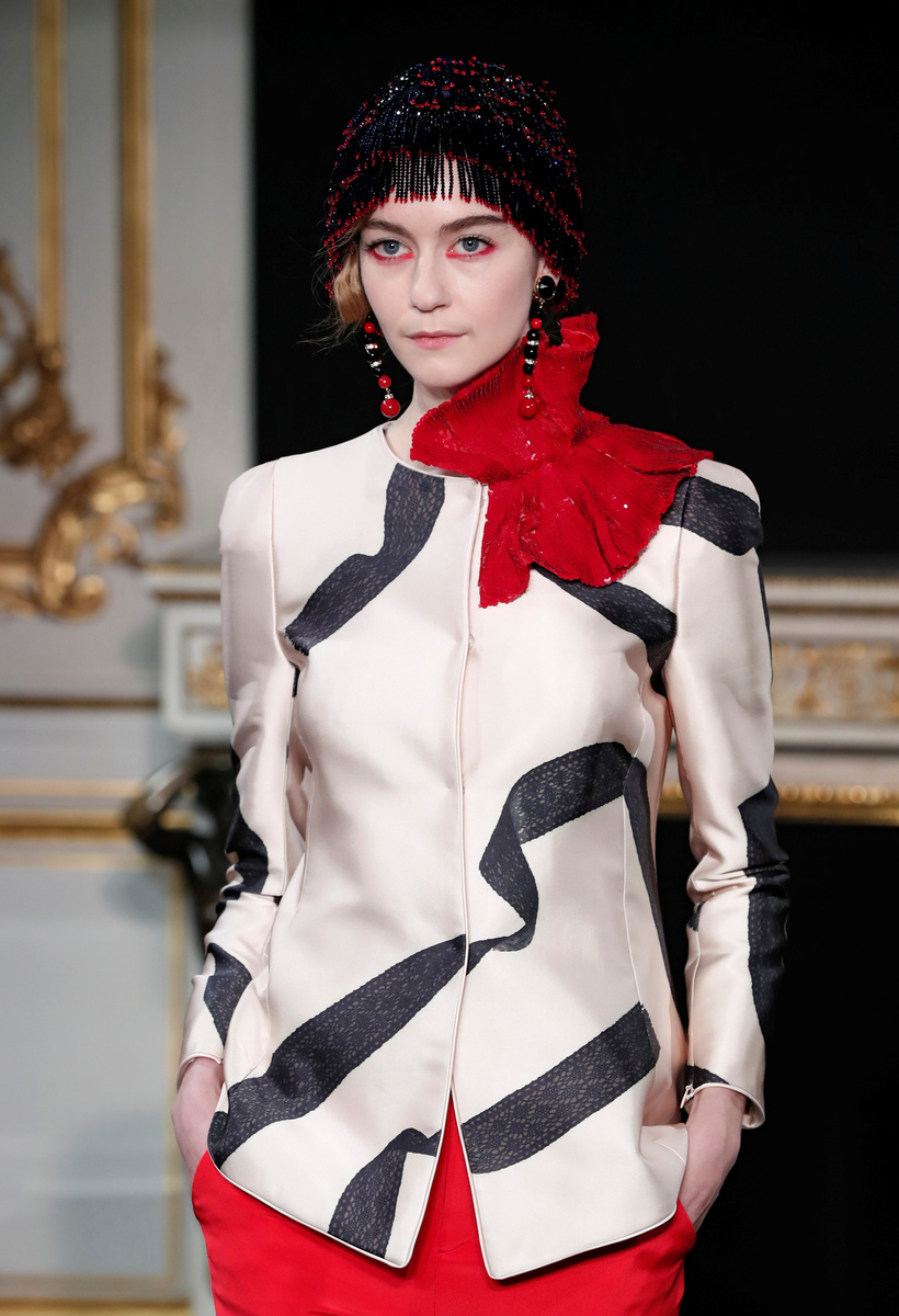 A model presents a creation by Italian designer Giorgio Armani as part of his Haute Couture Spring-Summer 2019 collection show for fashion house Giorgio Armani Prive in Paris, France, January 22, 2019. REUTERS/Benoit Tessier