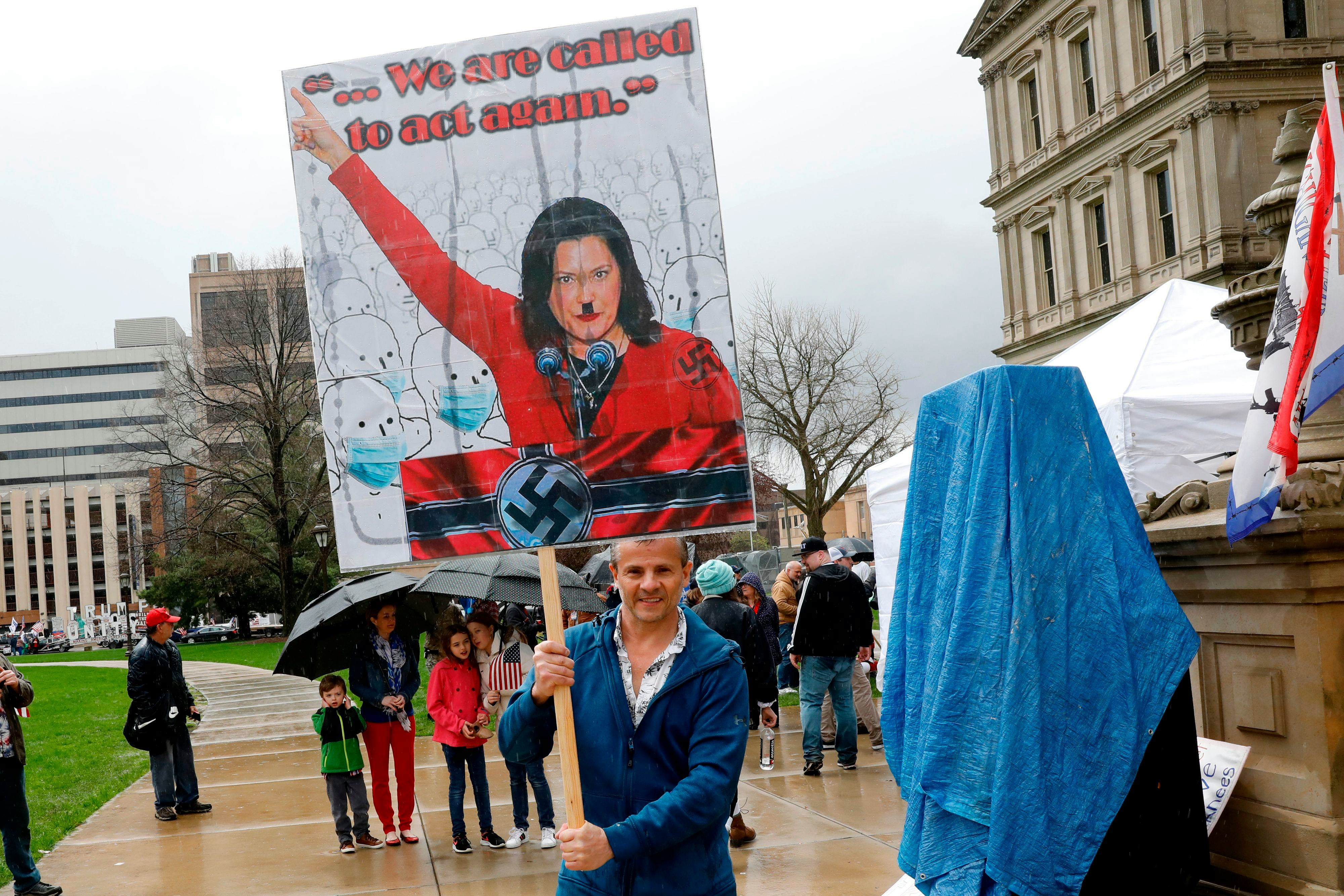 President Trump, who previously urged protesters to "LIBERATE" Michigan, responded to Thursday's rally by suggesting Democratic Gov. Gretchen Whitmer "give a little, and put out the fire" for these "very good people" who, again, tried to storm the statehouse with guns.
