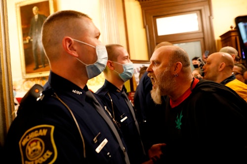 Some armed protesters managed to make it to the gallery above the floor, where state Sen. Dayna Polehanki (D) claimed they shouted down at her and her colleagues — some of whom wore their own bulletproof vests out of concern for their safety.