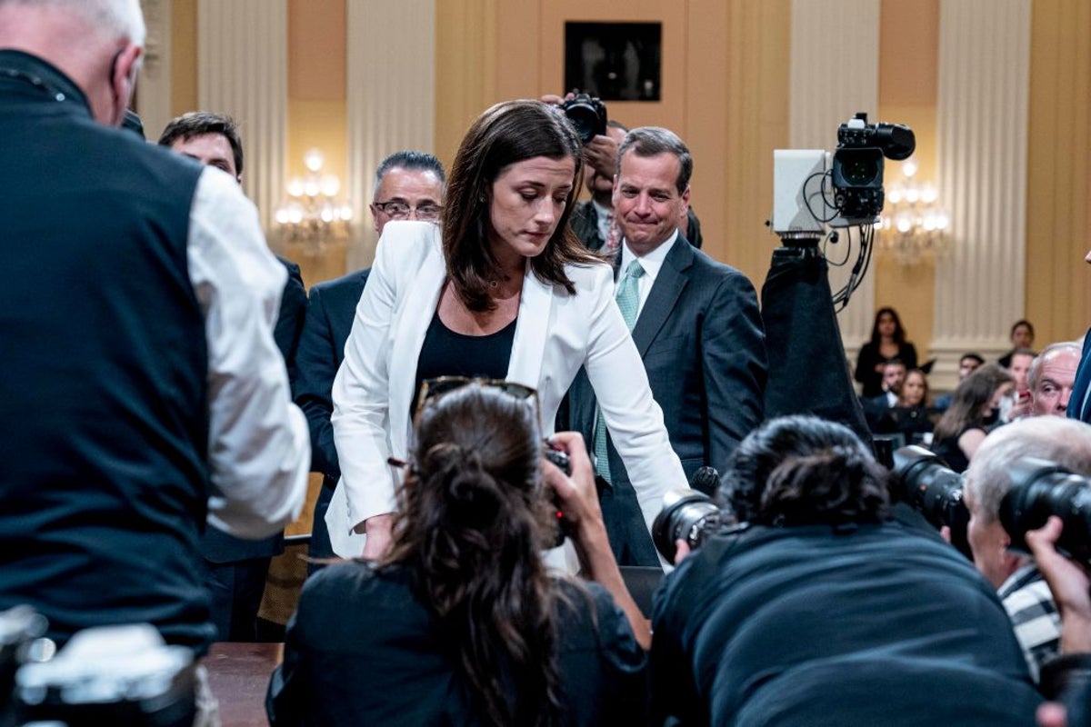 Cassidy Hutchinson, who served then-chief of staff Mark Meadows as a liaison between the West Wing and Congress, joined the panel for a surprise session of live testimony as the panel’s sole witness. She had previously given testimony to the panel in a recorded interview, but today laid out the damning details of what she saw publicly for the first time at the hearing.